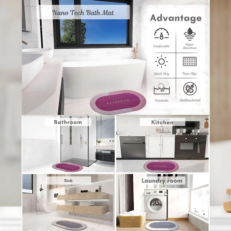 VERVENIX Pack of 2 Quick-Dry Anti-Slip Bathroom Mat | Non-Slip Rectangular Doormat | Bathroom Print Water-Absorbing Rubber Mat for Bathroom, Kitchen, Office, Living Room ? Random Color