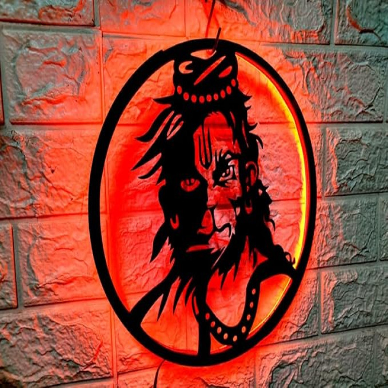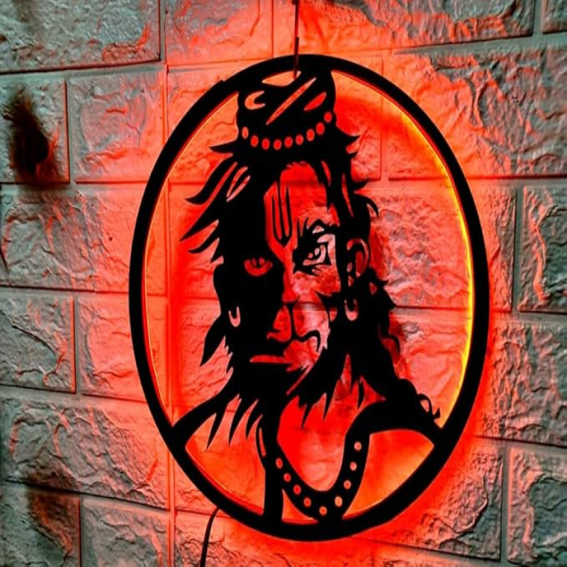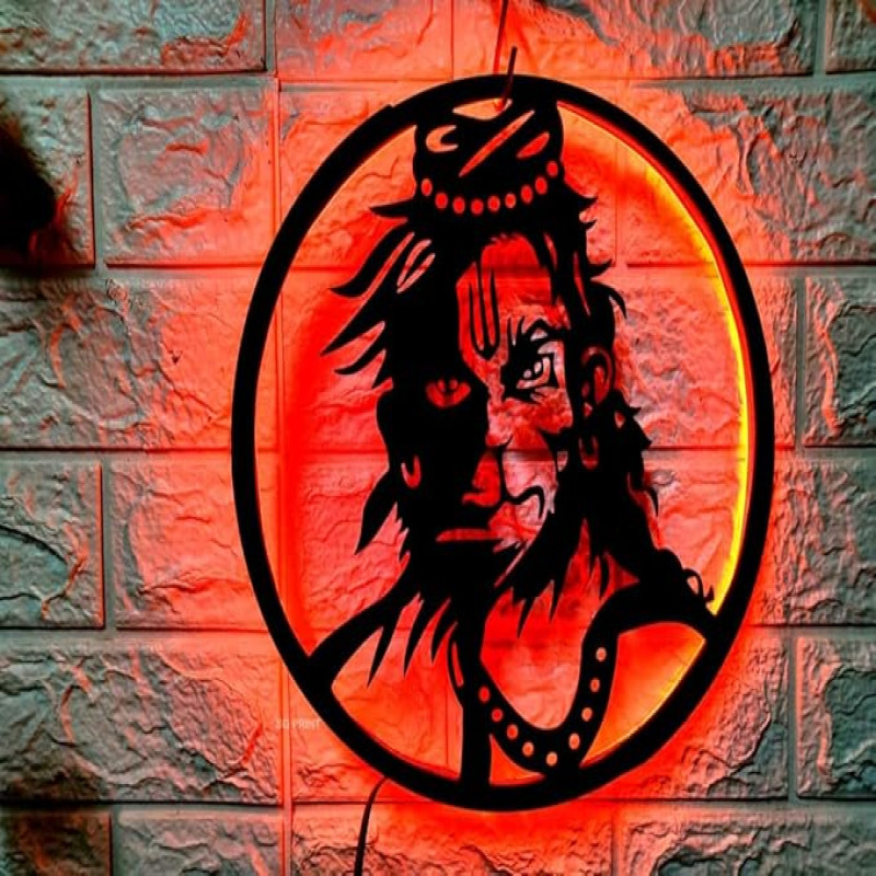 Wall Mitra Lord Hanuman MDF Wood Backlit Wall Art With LED Light For Living Room - Hanuman Ji Wall Decor, Wall Art For Home Decorations(Orange) 12x12