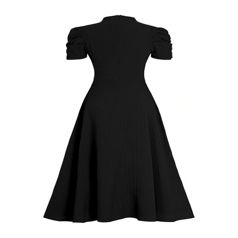Women's Solid Color V-Neck A-Line Maxi Dress for Women | New Year Party Outfit | Waist Cinched Puff Sleeve Western Dress | Elegant Casual Wear