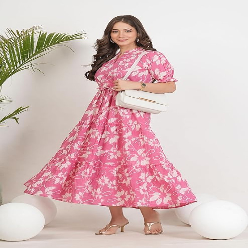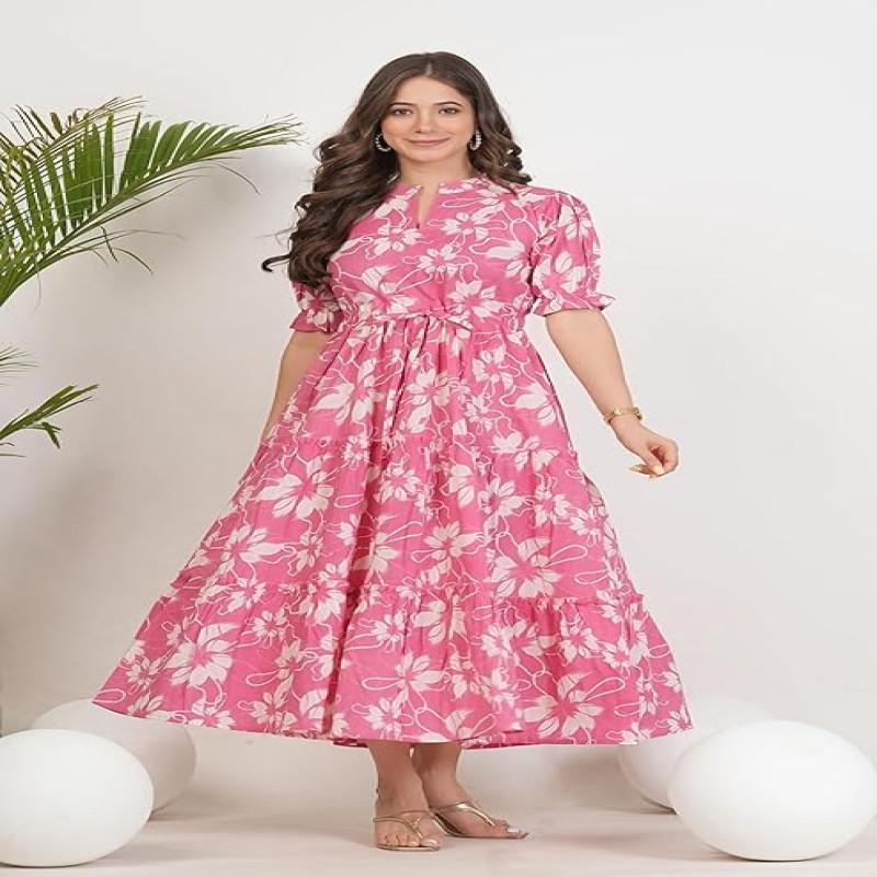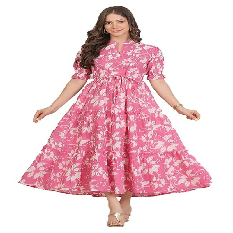 Women's/Girls Cotton Kurta for Women Floral Printed Anarkali Kurta || Floral Flared Western Dress